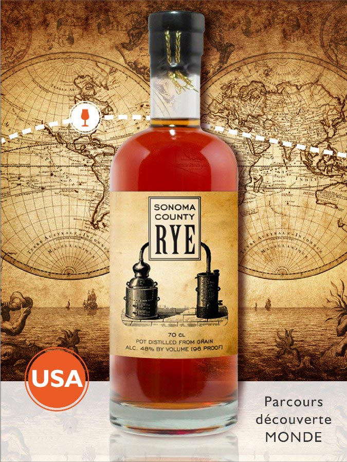 Le Sonoma County Rye (whiskey à base d’au moins 51% de seigle) est un whiskey splendide qui nous vient de Californie où il a été élaboré selon des techniques ancestrales.