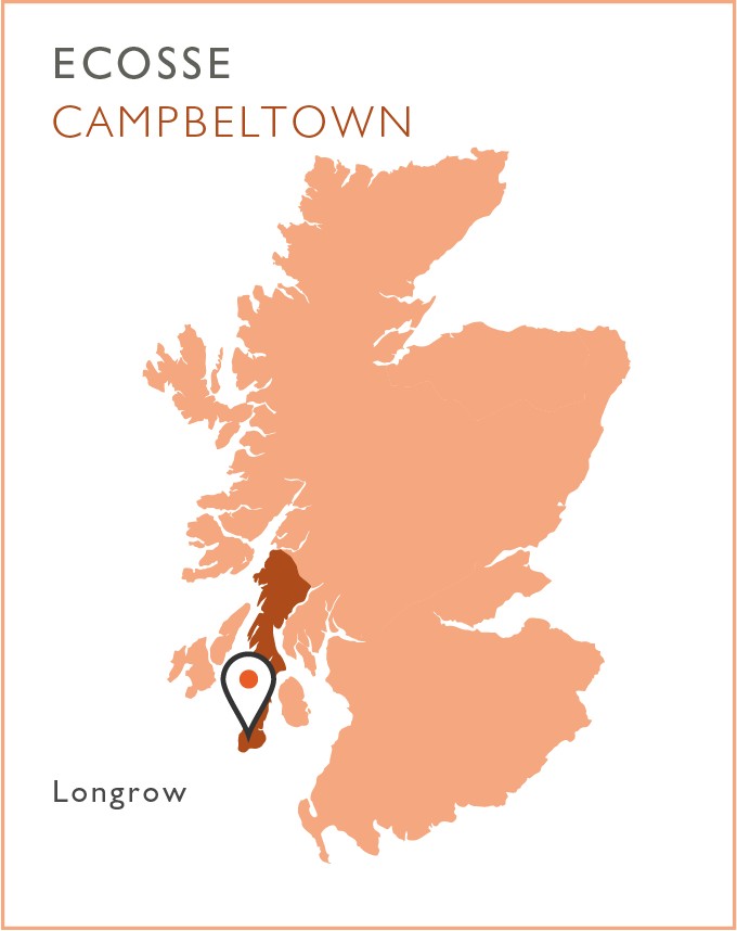 Single Malt - 46% - 70cl - Ecosse CampbeltownProduit en petites quantités par Springbank, ce single malt rare est un Longrow 10 ans, excentrique et intrigant, puissamment tourbé qui mérite d’être découvert. Longrow a d’abord servi à apporter une touche tourbée aux blends de Springbank et c’est à partir de 1990 que sa production est devenue annuelle tout en restant limitée. Ce single malt de Campbeltown est obtenu par ce qu’on appelle deux distillations et demi. L’eau-de-vie de la deuxième passe est redistillée avec celle de la première passe, ce qui augmente la complexité du résultat final. Il est ensuite vieilli en fûts de bourbon et de sherry.