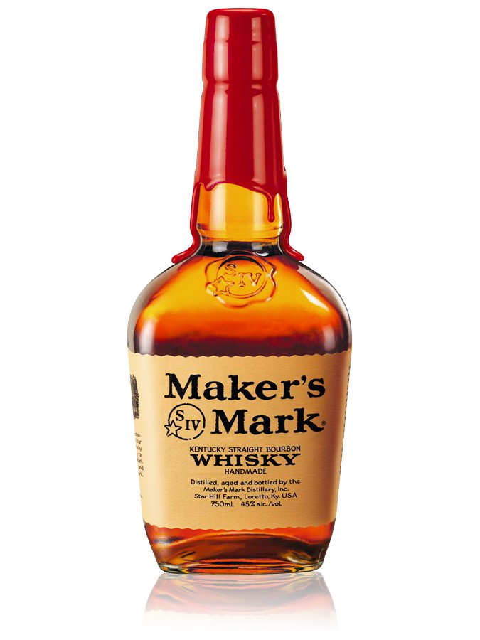 Boubon - 45% - 75cl - Etats Unis KentuckyLa maison Maker’s Mark cultive sa différence en produisant ce bourbon devenu culte par petits lots ou small batchs, pas plus de 19 fûts à la fois. La première bouteille éditée en 1958 portait déjà la marque de fabrique caractéristique, le fameux enrobage en cire rouge du bouchon, coulé à la main, et le mot Whisky orthographié à l’anglaise. Dès l’origine, les hommes qui ont imaginé ce bourbon ont opté pour le blé en remplacement du seigle, car ils voulaient un bourbon suave et doux.